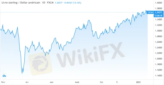 WikiFX News (dimanche 14 février 2021)- La paire GBP/USD s'est échangée dans une volatilité extrême depuis le point plus bas en mars 2020. Il a souffert de baisses agitées après avoir atteint un sommet de 1,373 en mi-janvier 2021. Il est prévu que cette paire devrait continuer de lutter contre les fluctuations, car la Livre Sterling et le Dollar américain semblent languir au cours de la période récente.
