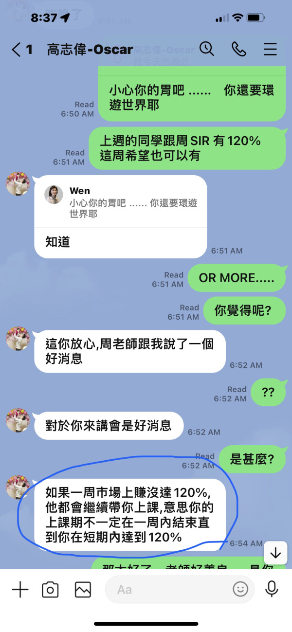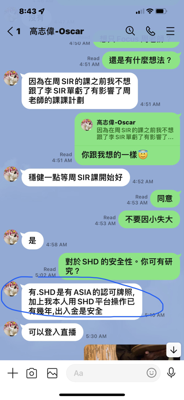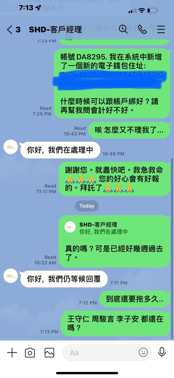 藉由FB認識王守仁 用Line邀請我參加他的漲停股交流群, 參加免費線上直播學習選股技巧. 助教高志偉利用我想學習並賺錢的心. 一直說服我參加李子安數據課及周駿言的增資課 說保證120% 回報 誘騙我入金. 並且說SHD 平台出入金很安全叫我放心. 可是到現在 Data Age 老師人都找不到. SHD 專員也敷衍拖延. 不讓出金. 我在美國已請聯邦調查局調查此事. 調查相關公司 包括 Data Age www.dataagetw.com, SHD www.starhonortw.com and Carlyon Finance Ltd www.carlyonfinancial.com 還有其他學員也深受傷害. 大家賺錢不易. 這是法治的社會. 不法的騙局. 欺騙善良老百姓辛苦的血汗錢. 會有嚴重的報應的. SHD 趕快出金還錢 回頭是岸. 我的SHD 帳戶 DA8295 請SHD 盡快出金還我錢了結此案. 否則我不會善罷甘休的.