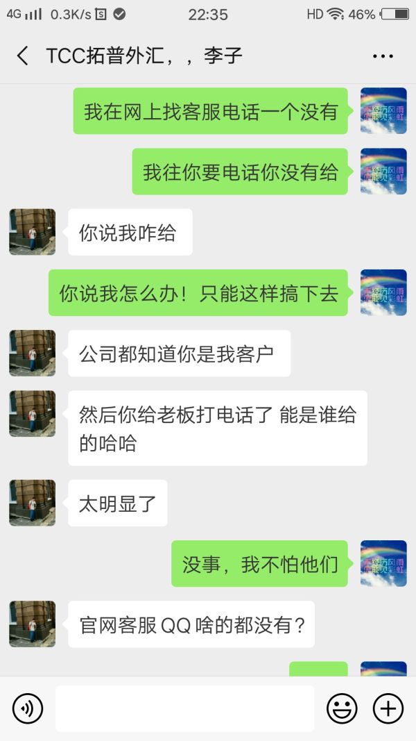 TCC拓普外汇平台是一家真正的黑平台,几个中国人自己做的一个平台,服务器在香港,后台由他们自己操作,滑点相当严重!客户入的钱都转到他们自己的账户里了!肯本没有到资本市场,隔夜库存费高的惊人,汇率差也非常大!这家公司没有固定的地方,找人都找不到,希望在这家黑平台做的投资者看到我发的信息,快点出金,离开这家黑平台,以免造成经济损失,这家平台现在没有任何的监管,说跑路就跑路,说是什么英国监管,都是骗人的!请投资者们看到转发!