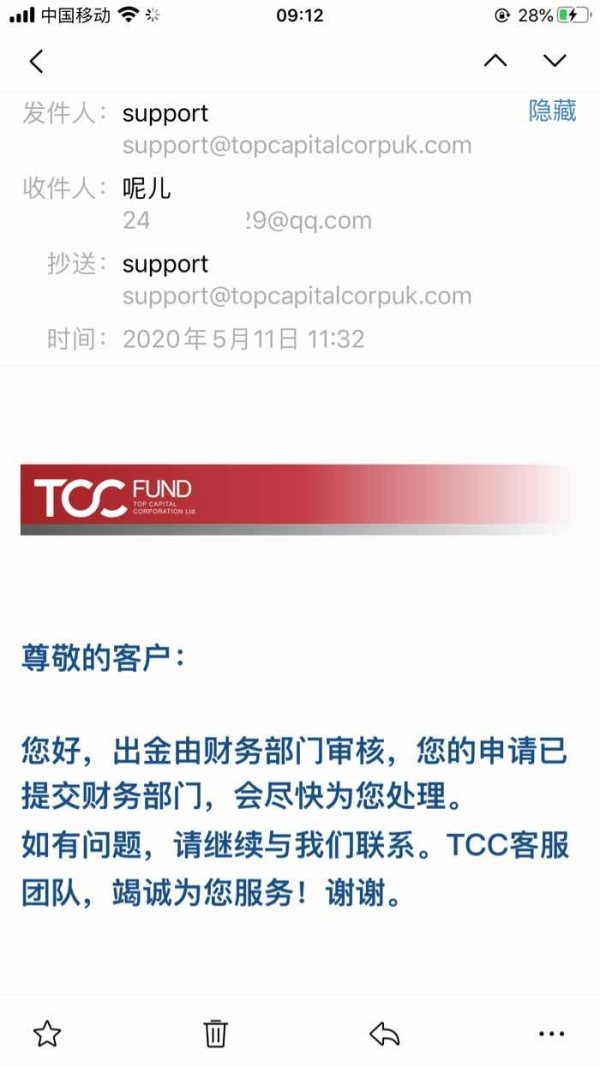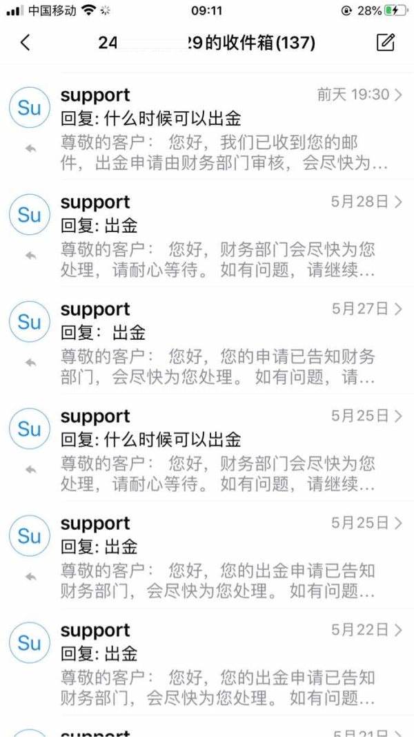 请帮忙催促一下。我于5月11号提交岀金申请,一直没有任何反应,没审核,也没有扣款。 一直发信息询问总是回复己提交财务,而不给回复任何出金时间。