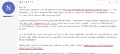 at first, everything i traded on the Olymp Trade platform was smooth and there were no abnormalities. However, when i applied for a withdrawal, there was a problem. The Olymp Trade platform claimed that i violated the clause that "all information provided during the account registration period and during the execution of the agreement is true and reliable" and froze my trading account. The platform said that they only refunded the my principal of USD 1,000, and the profit of USD 1,300 could not be withdrawn.