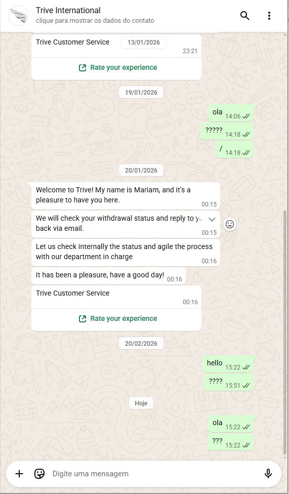 estou desde dezembro tentando retirar meu dinheiro e eles nao me pagam, pararam de me responder,ate gerente de contas que trabalhava la eles nao respondem mais, puro golpe da trive , estou com 5k usd la e nao deixam eu retirar
