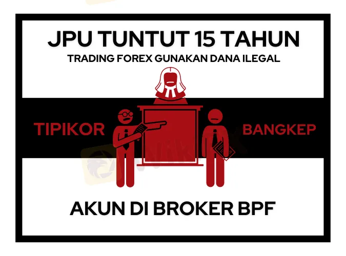 Ikhtisar:Pihak JPU ajukan tuntutan pidana penjara selama 15 tahun terhadap pelaku trading forex yang menggunakan dana ilegal hasil korupsi dari kas Pemda Banggai Kepulauan (Bangkep). Terdakwa Achmad Tamrin diketahui membuka akunnya di perusahaan pialang berjangka (broker forex) PT. Bestprofit Futures (BPF)