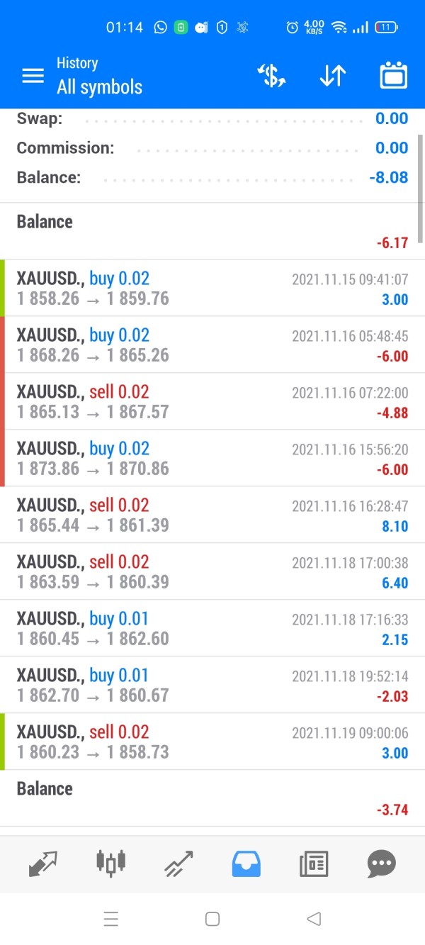 nessun trading dal vivo. solo storia