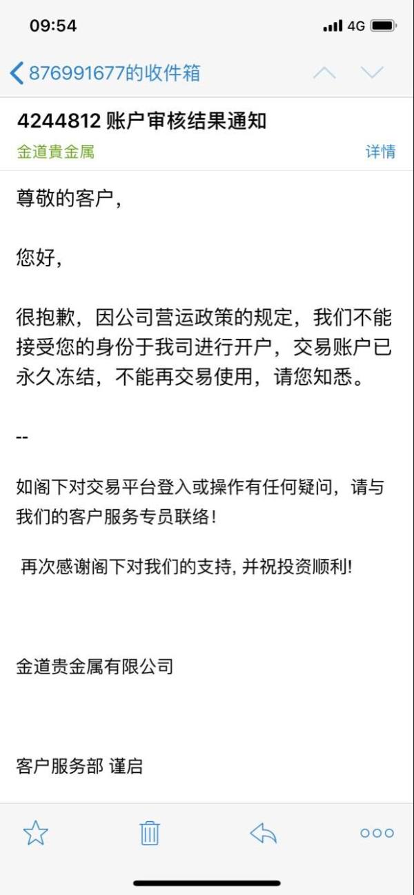 2018/9/26,金道无缘无故永久停用本人MT4,MT5,GTS账号,本人2016年4月操作至今2018/9月账号仍正常使用,共亏损70万元人民币,现在毫无征兆的被停用账号,无法查询之前亏损的任何交易记录,希望金道给我一个说法。