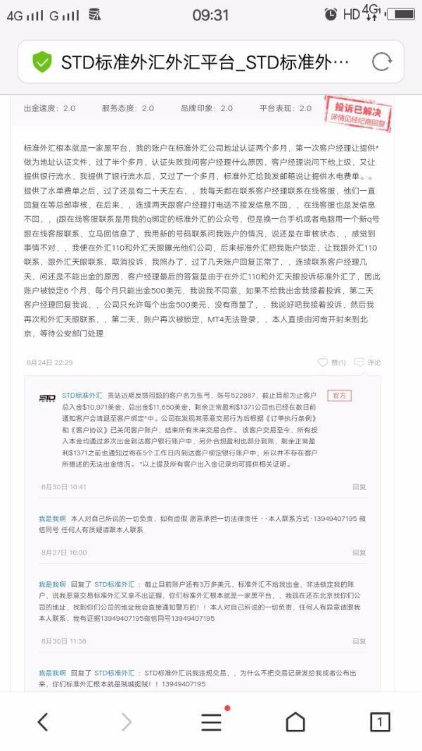 STD标准外汇盈利,,没法出金,本人正式投诉中!!