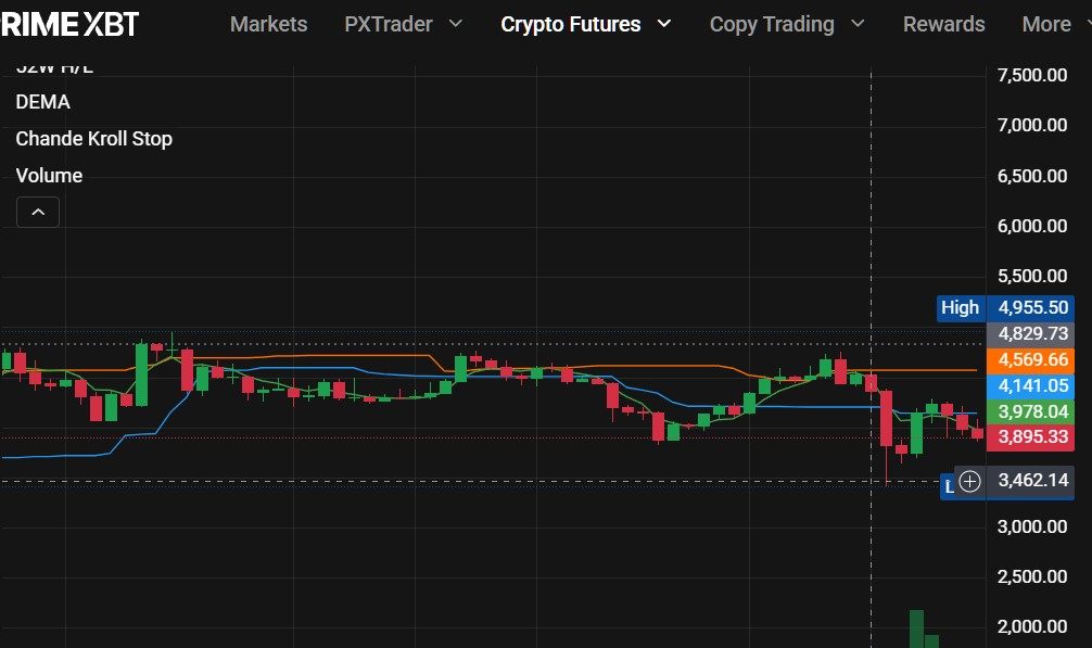after Binance had the crazy wick, huge crash, and Hyperliquid was also proven unstable, moved here. You can see that ETH barely dipped here, there was no $2k price like on Binance. It went just to $3400, so actually this broker held MUCH better! I think trading is a bit cheaper here too, although it isnt on chain. But out of the ones I checked, this one held the best during the crash, so I think its best to be here.