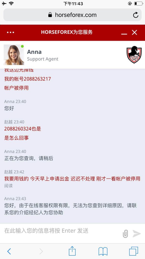 詐欺プラットフォームHorseForexを罰してください。彼らはエージェントをブロックし、クライアントのアカウントを禁止しました。