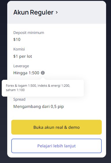 Leverage indeks/energi 1:200 dan forex 1:500, ini udah bagus...