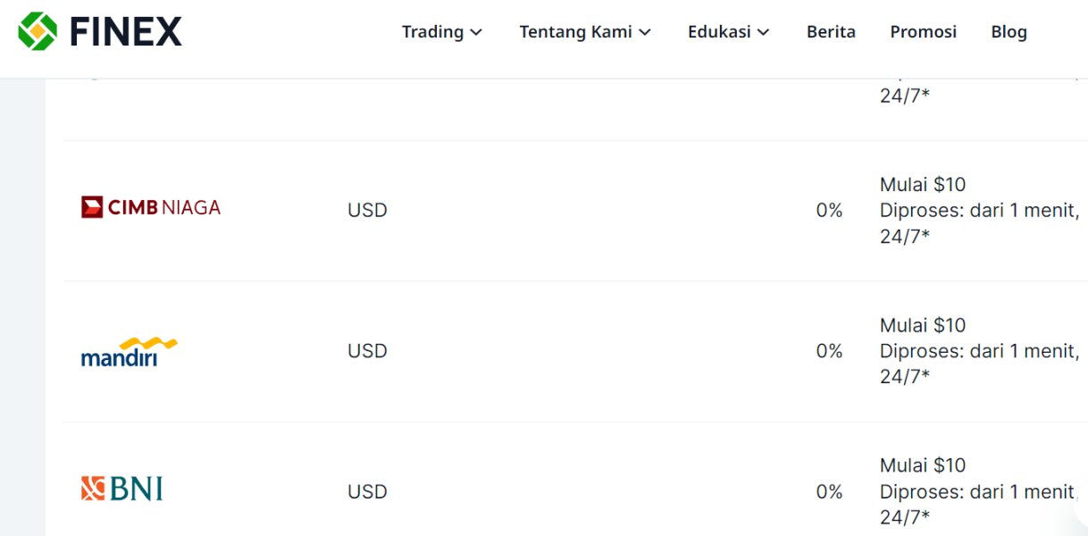 Ini adalah pialang PERTAMA dalam hidup saya yang memiliki pelokalan seperti itu. Yang saya maksud adalah banyak layanan Finex yang dilokalkan di Indonesia. Sebagai contoh, saya melihat: - BCA - CIMB NIAGA - MANDIRI - dan lain-lain Saya mengerti bahwa ini lebih nyaman bagi saya daripada yang lainnya. Saya memiliki rekening BCA dan sudah jelas ini adalah metode yang saya pilih