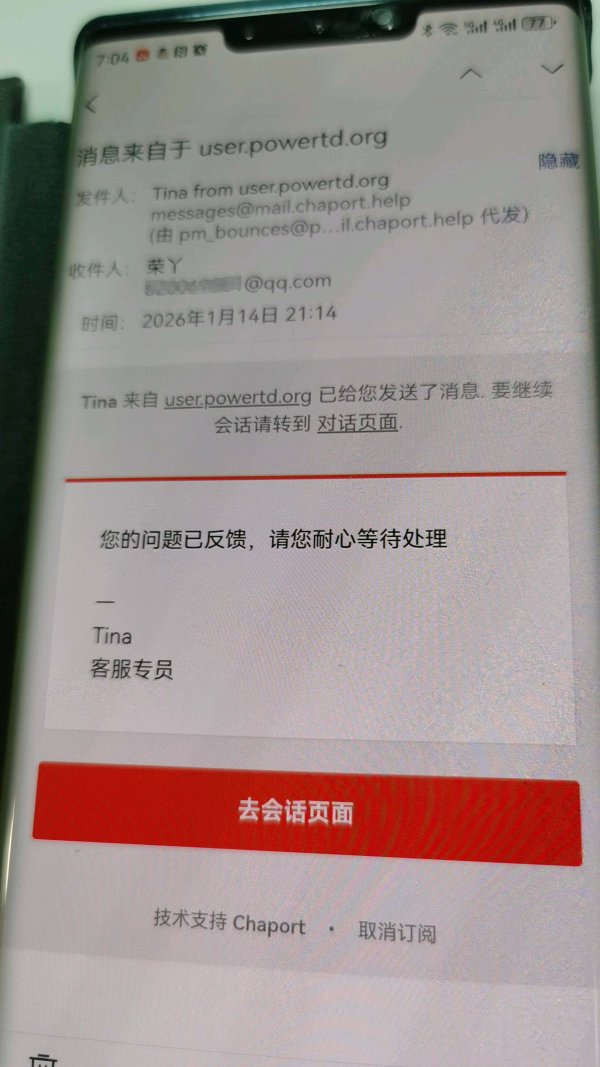 一月八号申请出金到现在都是待审状态。多次沟通还是没有人解决,找代理也总是前后言辞不一的拖延,邮箱收不到信息客服没有回复。入金成功交易后亏损一百多美金就选择出金,一直都是待审状态,客服还说要代理确认