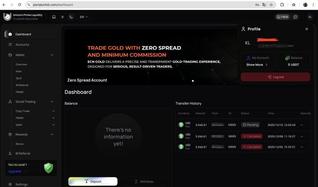 UNFXB is a fraudulent broker that operates with zero integrity. I am writing this to warn the global trading community: Do not trust them with your money. I held a total balance of $5,046.61 USD in my account, which consisted of my $5,000 principal deposit and a tiny profit of $46.61. Despite having minimal trading activity and no violations, UNFXB has completely blocked my access and stolen my entire capital. This is not a "trading loss"—this is a blatant theft of my initial investment. They are refusing to process my withdrawal and have effectively vanished with my hard-earned money. The Bottom Line: UNFXB is a classic scam broker. They will take your deposit, but you will never see it again. Stay far away from this platform if you value your financial security.