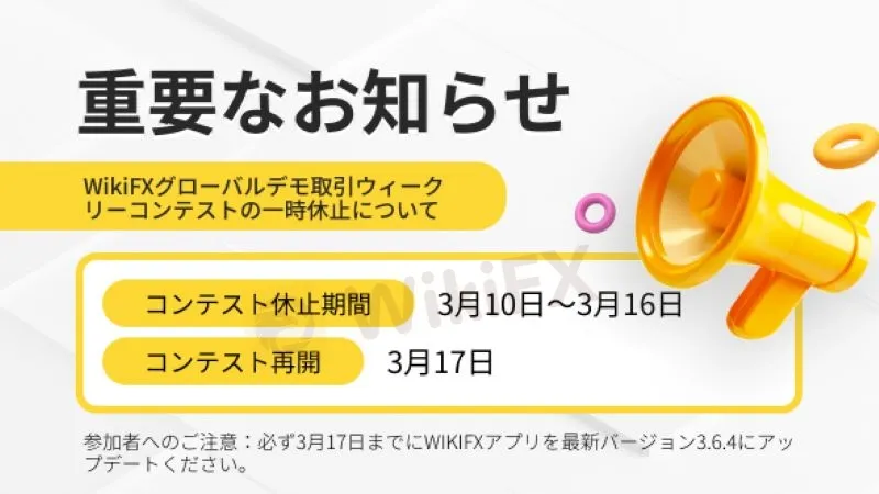 概要:製品アップグレードのため、WikiFXデモ取引ウィークリーコンテストは以下の期間、一時休止となります。