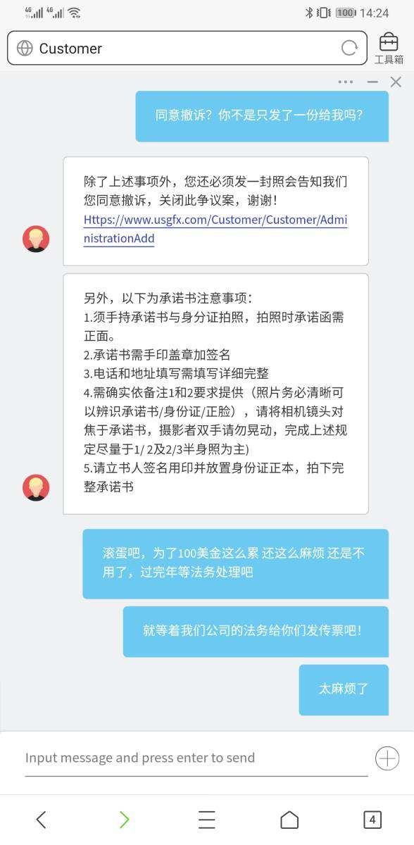 사기 USGFX 고객의 문제를 해결하지 못했습니다.