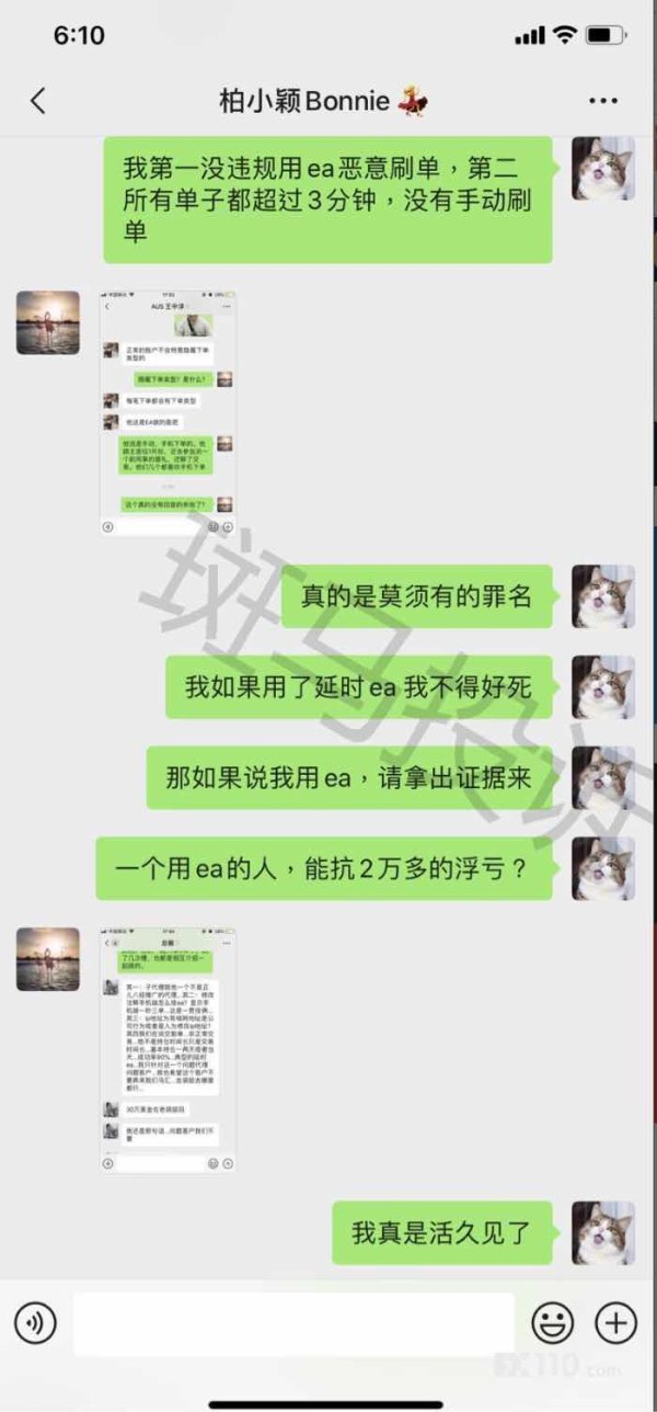 本人是一名全职的交易者,从2019年年中,大概五月份左右,被跳槽的客户经理拉人头到马汇,宣称这里交易成本更低,交易环境更好。此客户经理与本人曾一同就职于国内一家金融公司,出于前同事关系,故信任之。后来了解到此平台是当时的高管带着他们团队单飞而开设的平台,当时还污蔑他们的母公司说各种坏话,让我产生了恐慌,再出于对客户经理的信任就转来了马汇。 在今年2月中旬,我申请出金的时候(全额出金),点击提交之后,主账户,交易账户立刻就被冻结了(如图所示),联系客户经理,经她反馈之后得到的结果就是:我用所谓的“延时EA”交易。只能给出本金,不让我出利润。 首先,第一我这近一年来的所有交易都是自己通过自己在电脑看盘,或者在手机点单进行的交易。其中在2019年9月份黄金回调开始时到11月底,账户最大回撤接近百分之50。 第二,被他们强行扣上一个“持仓时间短”的莫须有罪名。我持仓最久的一张单是三个月,抗了接近700点的回撤。所有的单子都并没有“剥头皮”的操作。 第三,因为平时出门在外,手机端苹果4G会经常连接不上MT4,所以我经常会使用VPN来方便连接,然后平台就以我修改IP地址是用所谓“延时EA”作为证据