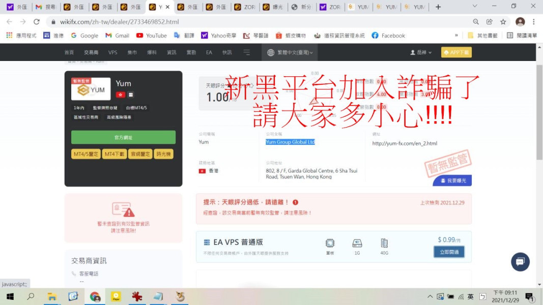 我是受害者,以沈痛的淚水向大家訴說!! 這個黑平台原本名稱是ZORO Global Limited,今天2021年12月28日改成 Yum Group Global Ltd 原本網站 https://zoro-forex.com (一樣沒有聯繫方式,會員登入一樣的網頁) 改名後的網站 https://yum-fx.com/ (一樣沒有聯繫方式,會員登入一樣的網頁) 連結後都是同一個黑平台網站,請大家告訴大家,一定要小心,別加入黑平台,無法出金的。 我強烈懷疑,他們真的是詐騙集團,逍遙法外,一定涉及洗錢及詐騙兩岸三地的人。 今天公布這樣的消息,我猜很快的在幾天後這個黑平台一樣會換個名稱,毫無良心的詐騙。 當然黑平台絕對會讓你找不到人,讓你求助無門、也部會出金給你。 我是受害者,希望別再有下一位受害。請看看ZORO Global Limited曝光資訊