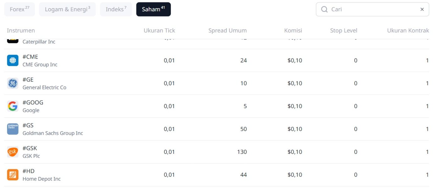 Ini saham favorit saya, spread tradingnya sekitar 5 pip.