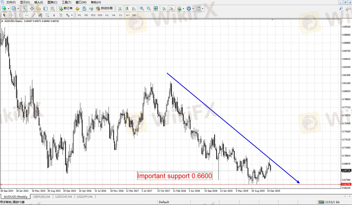 Meanwhile, the RBA is sticking to overall easing in its fiscal policies. Minutes of December‘s monetary policy meeting suggests that the policymakers will reassess the monetary policy to be taken after an economic outlook on February’s meeting, and there‘s a great possibility for further rate cuts. Market estimates there’s a 50% likelihood for RBA to lower interest rate, while more rate cuts may be coming in mid-year 2020; so AUD/USD is facing great pressure during the first half of the year.