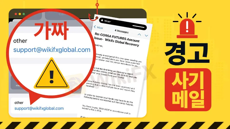 최근 WikiFX를 사칭하는 사기에 대한 여러 건의 신고가 접수되었습니다. 사기꾼들은 WikiFX의 공식 고객 서비스 이메일 주소(support@wikifx.com)와 유사한 'support@wikifxglobal.com'을 사용해 사기 이메일을 발송하고 있습니다.