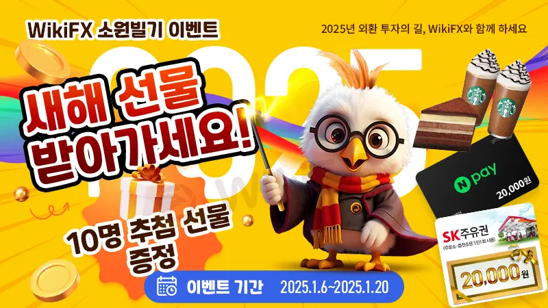 2025년 1월 6일부터 20일까지 WikiFX 앱 내 “고객센터” 버튼을 통해 원하는 새해 선물(택 1)을 알려주시면, 행운의 고객 10명을 추첨하여 경품을 드립니다!