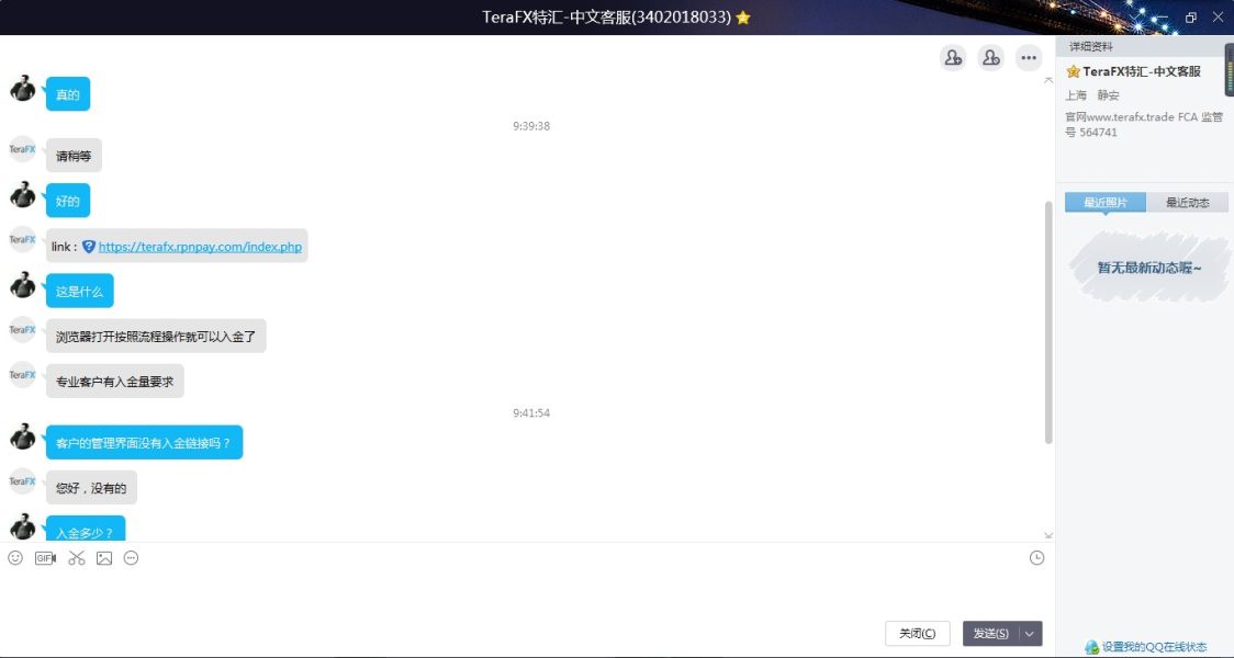 我在特汇开了户并打算入金,向客服咨询入金的方法,客服就给了我一个入金连接,而且是管理页面里没有的入金连接,不知道这是特汇的问题还是客服的问题。