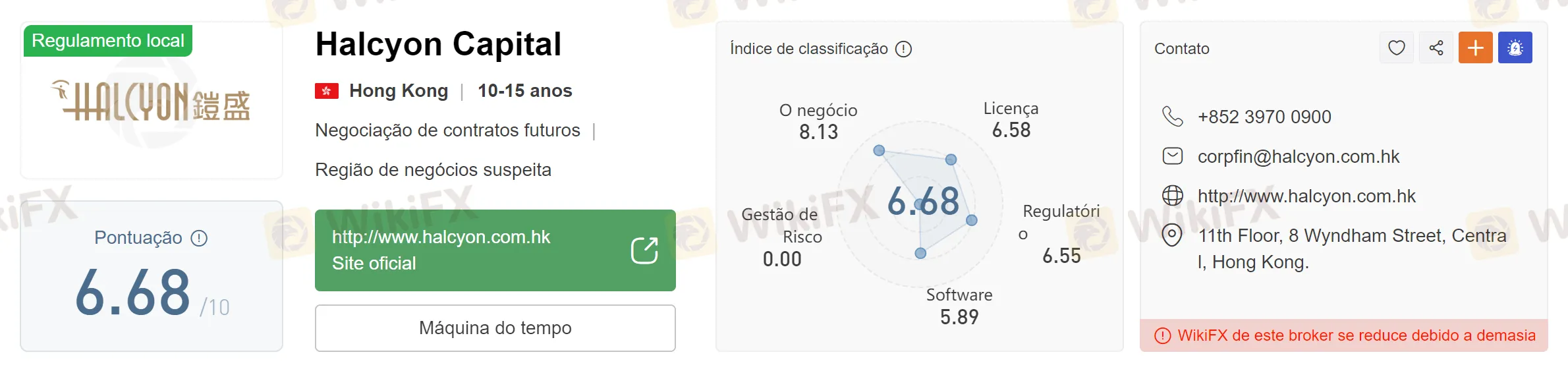 Resumo:A Halcyon Capital é uma corretora de Forex de Hong Kong, regulamentada porem com pontuação médiana. A plataforma da Wikifx relatou varias reclamações que segue abaixo o detalhamento.
