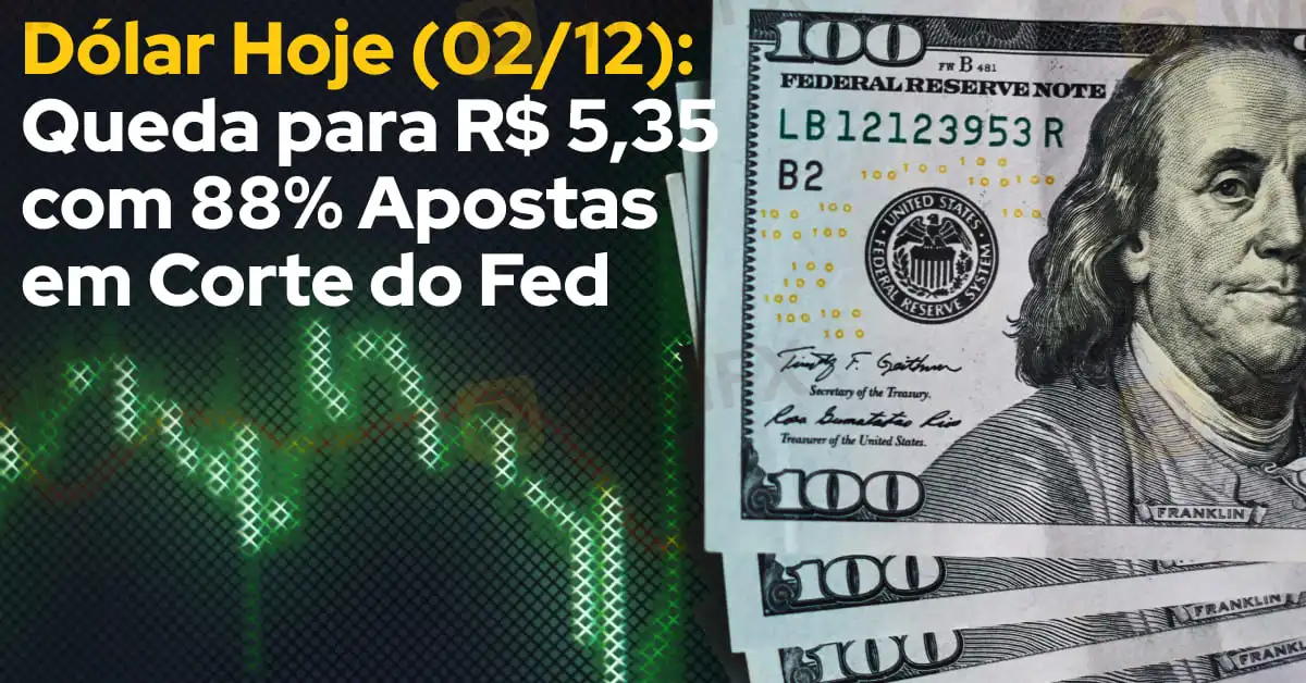 Dólar Hoje (02/12): Queda para R$ 5,35 com 88% Apostas em Corte do Fed