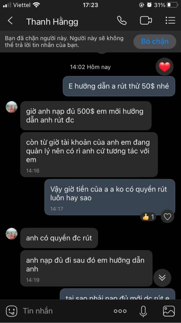 Họ bắt tôi phải nạp thêm tiền mới hỗ trợ rút