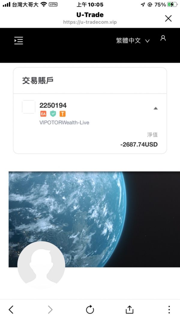這個出自於洪天峰投顧公司的朱佳玲小姐,在110年7月開始和我聯絡,中秋節還送月餅給我,這中間布局了半年讓我完全相信,第一次嚴重滑點的時候還要求我們匯款一半的金額進去,公司匯補償另一半的金額給我,還有簽合約這當中還有說要跟我見面,直到1/26要出金還說要付20萬的保證金!到2/8還說2/10會出金一筆錢給我,結果2/9晚上直接滑點!社群馬上刪除!LINE也不讀不回!