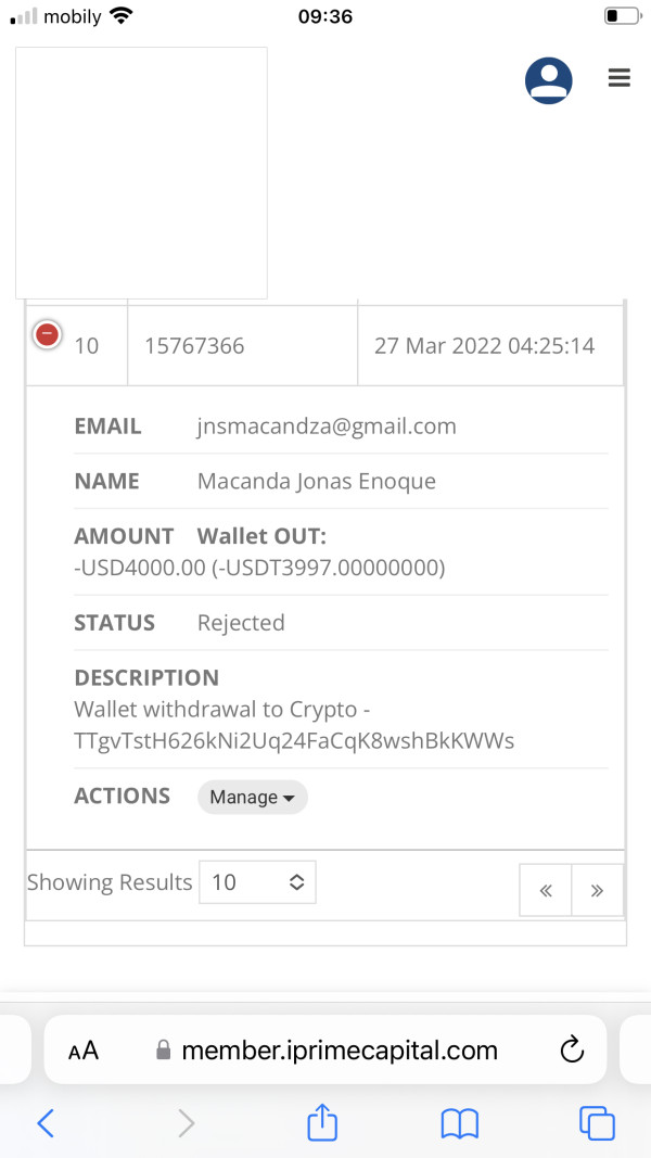 I’m investor on IPCAPITAL with MT4 account #4176772. I placed a withdraw on 27th March 2022, transaction number 15767366, in USDT TRC20 from IPCAPITAL to my Binance wallet address TTgvTstH626kNi2Uq24FaCqK8wshBkKWWs in amount of USD4000 expecting to receive in my Binance account USDT399700000000 and was rejected and desapear, not reflecting neither on IPCAPITAL wallet and Binance wallet or MT4 account. I hereby appeal that my withdraw must be approved to my Binance account mentioned above. You can see the proof of my rejected transactions. Now I’m willing to withdraw all my funds remaining my IPCAPITAL account in total amount of IUSDT2776.48 as they stopped all transactions from IPCAPITAL.