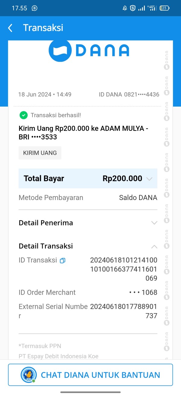 tolong saya ingin dana 200k kembali