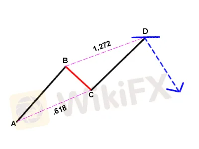 หากคุณใช้เครื่องมือ Fibonacci retracement บนขา AB ค่า retracement BC ควรไปถึงระดับ 0.618 ถัดไป บรรทัด CD ควรเป็นส่วนขยาย 1.272 Fibonacci ของ BC