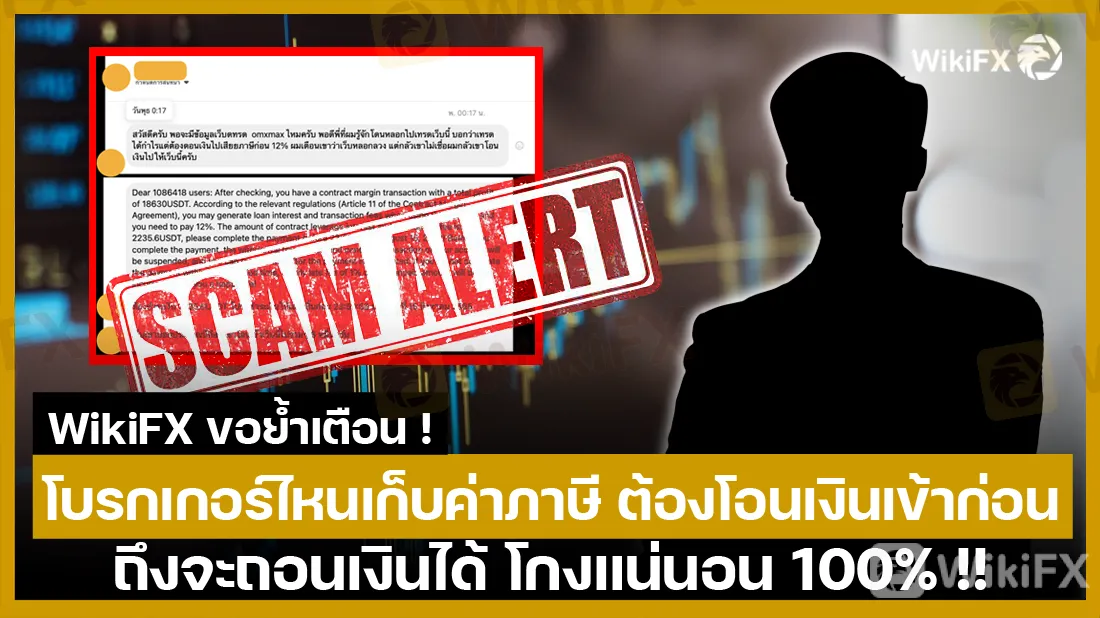 บทคัดย่อ:WikiFX ขอย้ำเตือน ! โบรกเกอร์ไหนเก็บค่าภาษี ต้องโอนเงินเข้าก่อน ถึงจะถอนเงินได้ โกงแน่นอน 100% !!