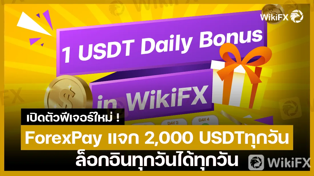 WikiFX เปิดตัวฟีเจอร์ใหม่ ! ForexPay กระเป๋าเงินออนไลน์ที่จะช่วยคุณ รับและส่ง เงิน USDT ได้อย่างปลอดภัย จัดหนักจัดเต็มกับกิจกรรมเปิดตัวฟีเจอร์ใหม่ แจก 2,000 USDT ทุกวัน ล็อกอินทุกวันได้ทุกวัน !