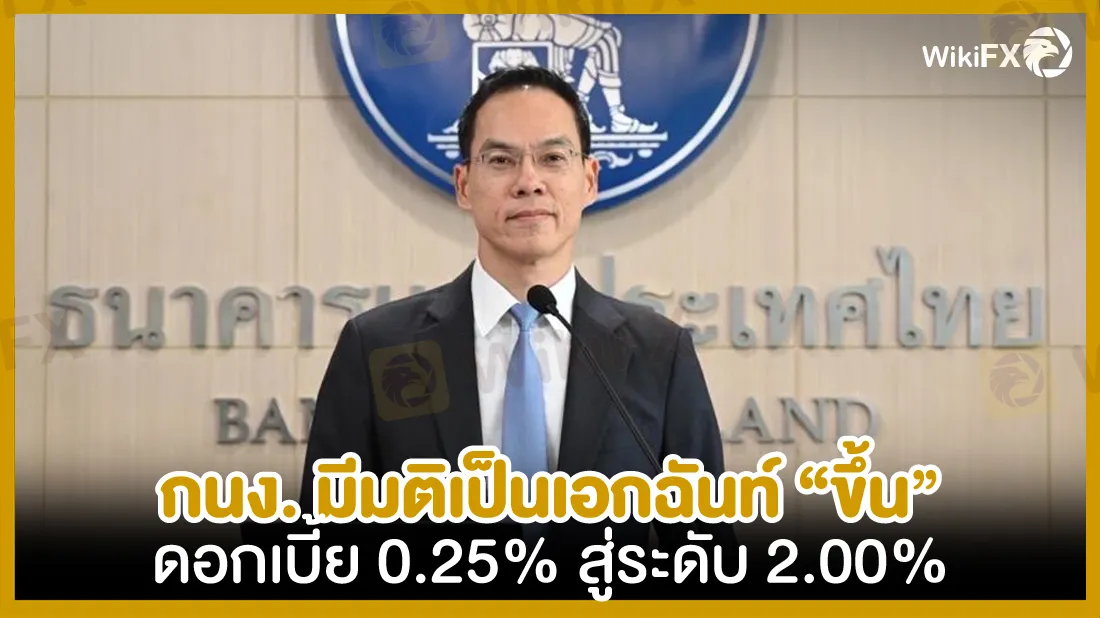 บทคัดย่อ:คณะกรรมการนโยบายการเงิน (กนง.) มีมติเป็นเอกฉันท์ให้ขึ้นอัตราดอกเบี้ยนโยบายร้อยละ 0.25 ต่อปี จากร้อยละ 1.75 เป็นร้อยละ 2.00 ต่อปี โดยให้มีผลทันที