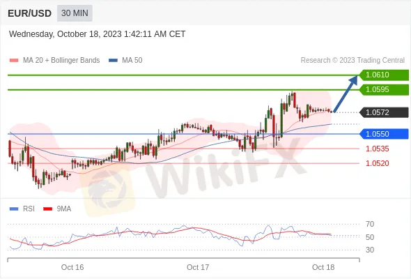 EUR/USD ภายในวัน: แนวโน้มขาขึ้นเมื่ออยู่เหนือระดับ 1.0550