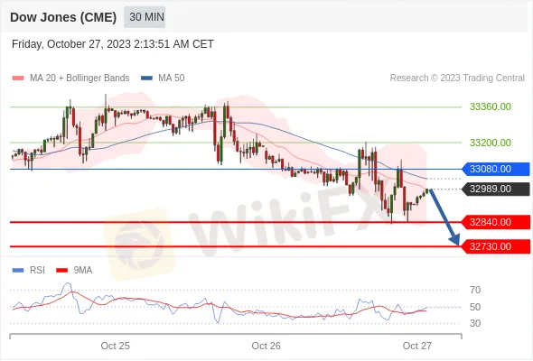 เหนือระดับ 33080.00 ให้มองหา upside เพิ่มเติมโดยมีเป้าหมายอยู่ที่ 33200.00 และ 33360.00