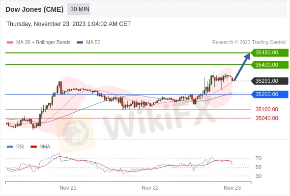 ตำแหน่งซื้อที่สูงกว่า 35250.00 โดยมีเป้าหมายที่ 35400.00 และ 35480.00 ในส่วนขยาย