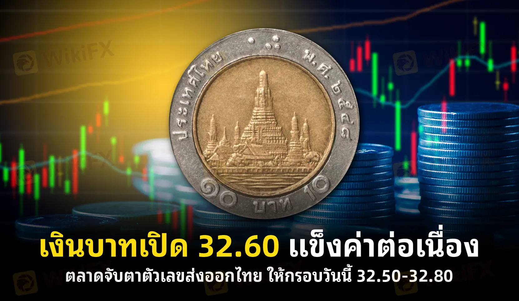 นายพูน พานิชพิบูลย์ นักกลยุทธ์ตลาดเงินตลาดทุน Krungthai GLOBAL MARKETS ธนาคารกรุงไทย เปิดเผยว่า ค่าเงิน บาทเปิดเช้านี้ที่ระดับ 32.60 บาท/ดอลลาร์ แข็งค่าขึ้นมากจากปิดวันก่อนที่ระดับ 32.85 บาท/ดอลลาร์