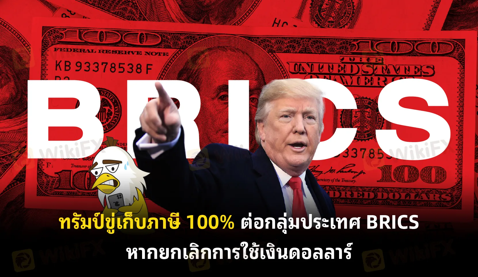 บทคัดย่อ:ทรัมป์ขู่เก็บภาษี 100% ต่อกลุ่มประเทศ BRICS หากยกเลิกการใช้เงินดอลลาร์