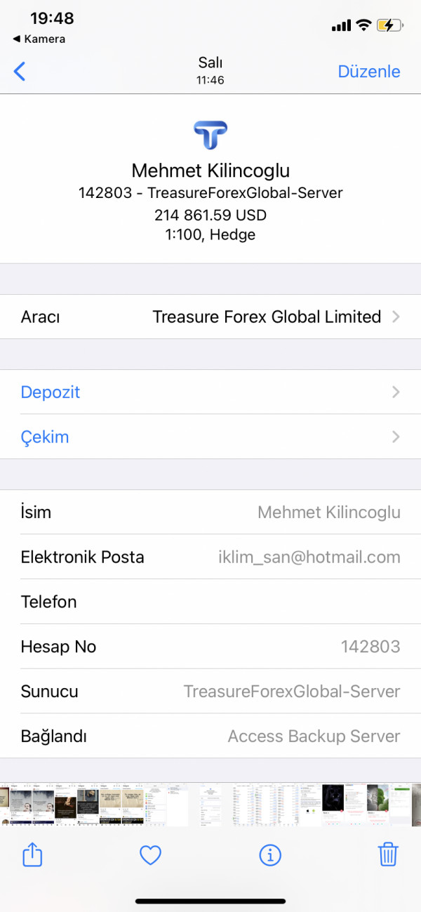 Treasure forex global limited authority, the market transaction restriction and withdrawal restriction you have placed on my account is illegal. As per my legal responsibility, you are an intermediary institution, you are not my boss, you are preventing my gains from the transactions I will make in the market, you will have to pay material and moral compensation, I will use all my legal rights, your platform has violated all commercial and ethical rules, I am waiting for you to answer me and .