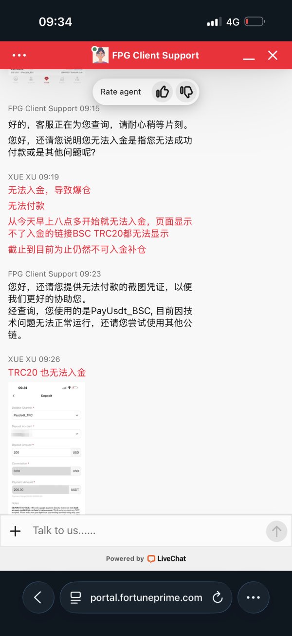 FPG平台在行情波动时不给客户入金补仓,强制平仓