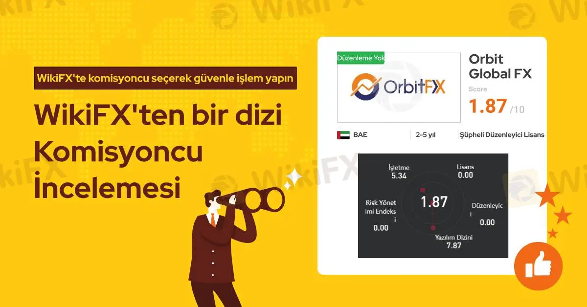 OrbitFX resmi forex lisansına sahip bir komisyoncu değildir ve regülasyonu bulunmamaktadır. WikiFXin araştırmalarına göre bu firmanın lisansı geçerli değildir. Ayrıca bu firmayla ilgili olarak son 3 ayda 5 farklı şikayet WikiFX yetkililerine ulaşmıştır. Bundan dolayı WikiFX bu komisyoncuya 1.87/10 gibi düşük bir puan vermiştir.