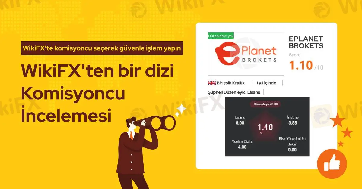 E-Planet resmi lisans sahibi bir forex komisyoncusu değildir ve WikiFX araştırmalarına göre bu firmanın lisansı geçerli değildir. Ayrıca bu firmayla ilgili olarak son 3 ayda 81 farklı şikayet WikiFX yetkililerine ulaşmıştır. Bundan dolayı WikiFX bu komisyoncuya 1.10/10 gibi düşük seviye bir puan vermiştir.
