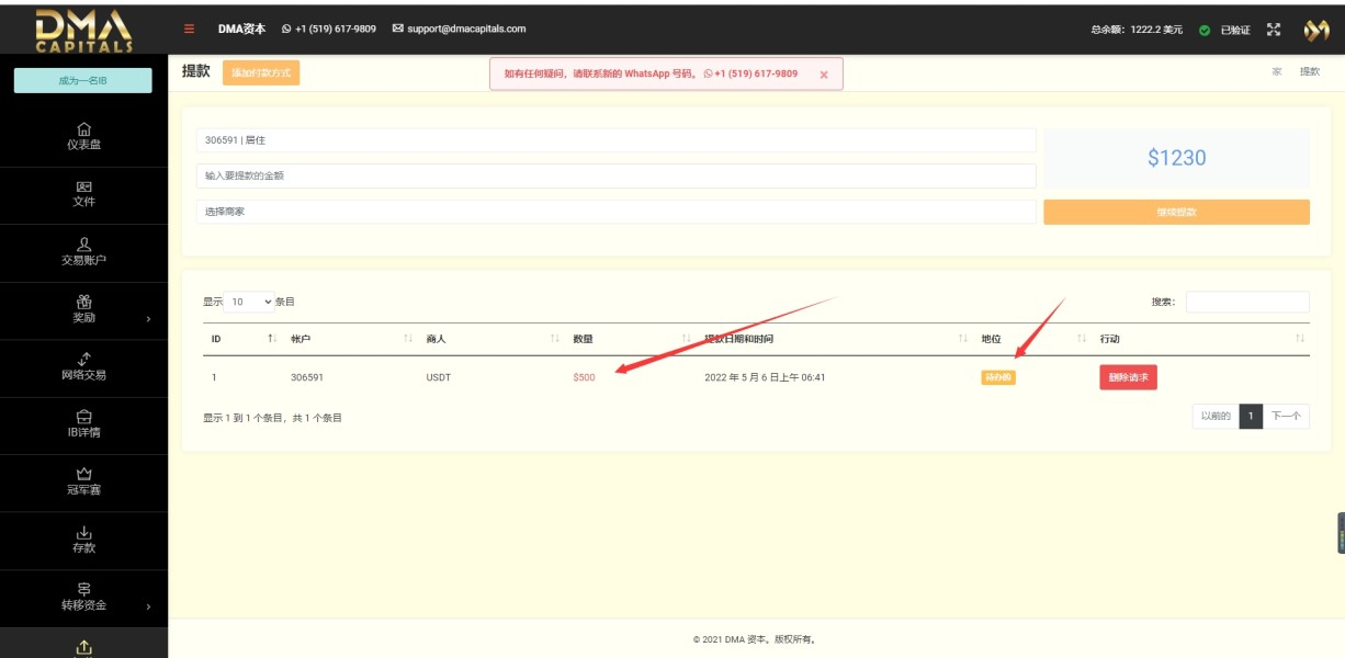 黑平台,入500U赚771U,不给出金 黑本金,账户和个人后台全部删除掉,提交出金申请,平台 删除出金订单提交