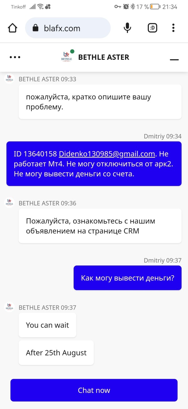 Счёт в blafx заморожен. Деньги вывести не могу.