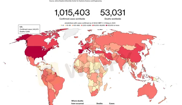 Tính đến sáng ngày 3 tháng 4, tổng số ca nhiễm coronavirus trên toàn thế giới đã vượt quá ngưỡng 1 triệu người, một cốt mốc được xác lập chỉ trong vòng chưa đầy 4 tháng kể từ khi các ca bệnh đầu tiên được phát hiện tại thành phố Vũ Hán của Trung Quốc. Tổng số ca tử vong là 51.000 người và tổng số ca hồi phục là 208.000 người.