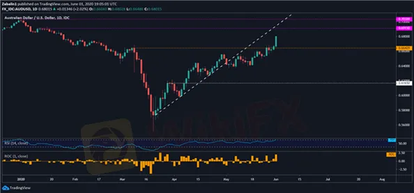 Lời nói đầu:Tin nhanh WikiFX ngày 2 tháng 6 Hôm qua, cả ba chỉ số chứng khoán lớn của Mỹ đều tăng và tâm lý đề phỏng rủi ro trên thị trường giảm mạnh, phản ánh trên thị trường ngoại hối. Đồng đô la Úc và đô la New Zealand tăngcao ngày hôm qua, trong khi các đồng tiền trú ẩn an toàn như yên Nhật và đô la Mỹ thì lại giảm giá.