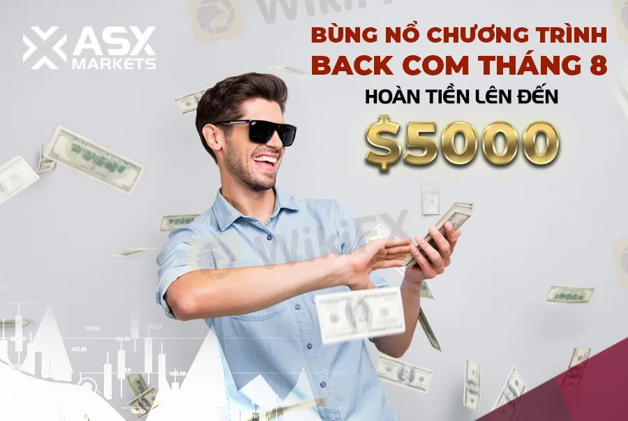 ASX Markets được biết đến với đội ngũ nhân viên kỹ thuật rất nhiệt tình, sẵn sàng hỗ trợ khách hàng nhanh nhất trong quá trình giao dịch. Thêm vào đó, chương trình Back Com Tháng 8 lần này còn giúp cho nhà đầu tư mới nhận được số tiền hoàn lại lên đến $5.000, từ đó tăng khối lượng giao dịch và cơ hội tốt để tối đa hoá lợi nhuận.