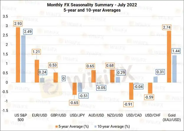 Tháng 7 là một tháng rất khả quan đối với S&P 500 của Mỹ , từ góc độ thời vụ. Trong 5 năm qua, đây là tháng tốt thứ ba trong năm của chỉ số này, đạt mức tăng trung bình + 2,93%. Trong 10 năm qua, đây là tháng tốt thứ ba trong năm, đạt mức tăng trung bình + 2,49%.